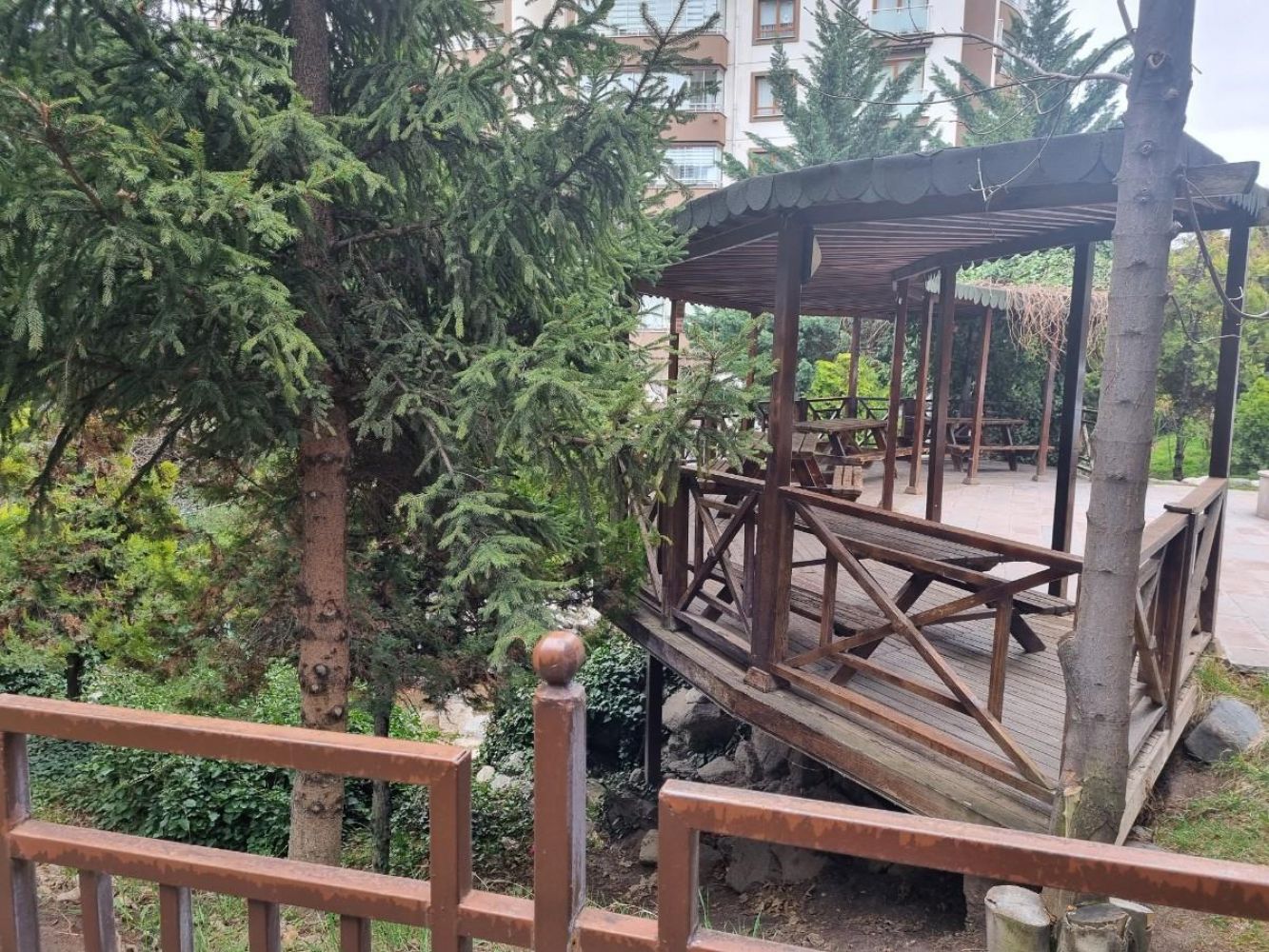 *-* Peyzajlı geniş bahçe, çardak